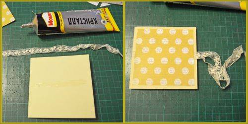 Теперь необходимо приклеить ленточку и верхний слой бумаги — квадрат 9х9.