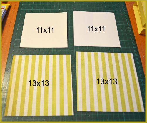 Теперь возьмем 2 картонных квадрата 11х11 и два бумажных квадрата 13х13.