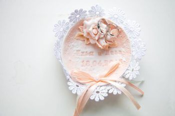 Одним из самых торжественных моментов во всей свадебной церемонии является передача молодожёнам обручальных колец. Традиционно это делают на мягкой подушке, созданной из шелка, атласа или бархата.
