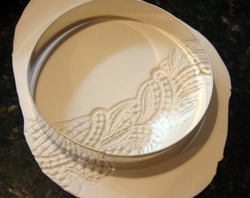 Аккуратно поместите круг с кружевной текстурой в неглубокую тарелку.