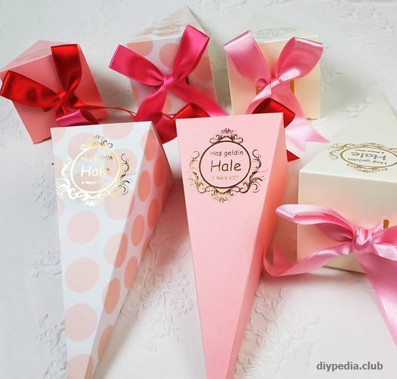 Интересно! Другой популярный вариант – бонбоньерки-коробочки. Они тоже смотрятся очень красиво. А если вы хотите чего-то более оригинального, отличное решение – симпатичные треугольники.