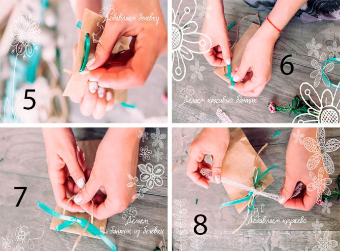 - Завяжите полосу кружева и не забудьте наполнить бонбоньерку сладостями.