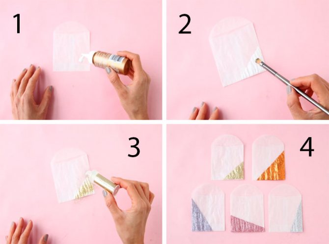 Вам понадобится: пакетики, клей, кисточка, блёстки, попкорн.
