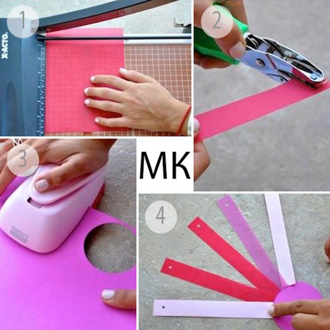 - Проделайте отверстие дыроколом на конце каждой полоски.