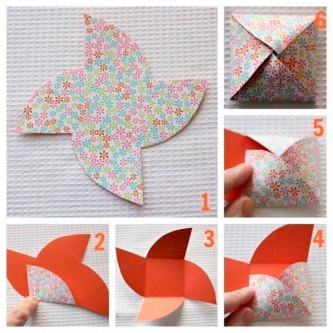 - Сделайте 4 загиба в середину, формируя центральный квадрат.