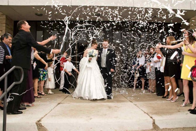 Красивая свадебная традиция встречать молодоженов дождем из конфетти,