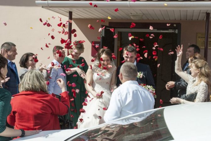 - После бракосочетания и выхода из ЗАГСа принято осыпать молодых рисом, монетами и лепестками, что сулит им богатую семейную жизнь.
