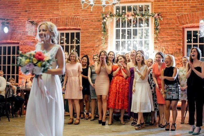 Когда букет падает на пол — это предвещает скорую вторую свадьбу в доме. Счастливице, которой довелось поймать букет, предначертано выйти замуж в течение года. Нельзя отдавать цветы подругам, с ними уйдет семейное счастье.