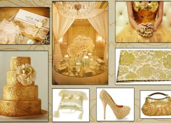 - молодожёны ещё в приглашениях могут сообщить гостям, что свадьба будет в золотом цвете, чтобы те могли заранее продумать свой образ;
