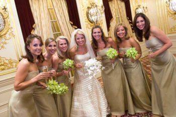 Тема свадьбы больше всего проявляется в нарядах подружек невесты, но не обязательно их преображать в золотые статуи.