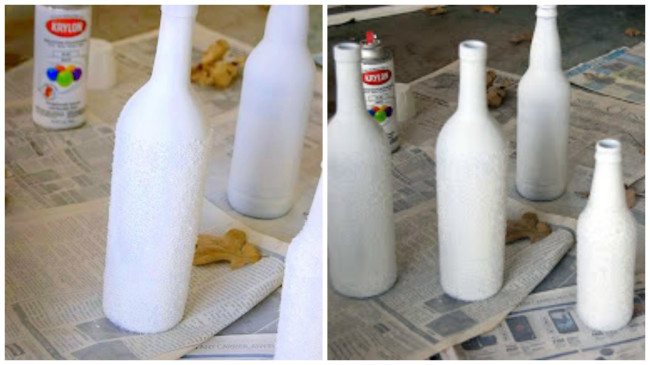 - Нанесите на бутылку 2 слоя краски и дайте высохнуть.