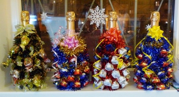 Ананас из конфет и шампанского. Подарок на Новый год. Мастер — класс.