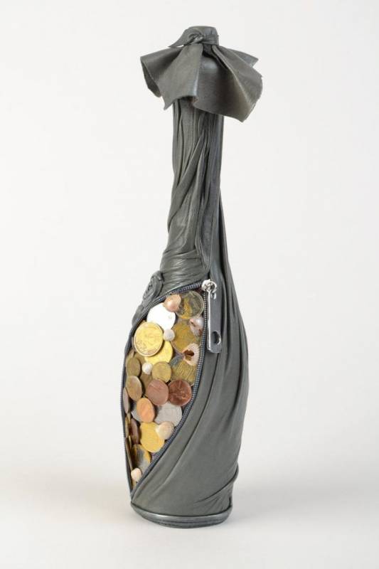 Эти же идеи подойдут и на день рождения для женщины. Но чтобы показать зрелость, мудрость, можно использовать ткань и оформить бутылку в различных стилях. Например, это будет фотография именинницы, обрамленная красивыми складками дорогой ткани. Или, может быть, более брутальный вариант мужчине-имениннику с использованием армейской символики, литературных пристрастий, напоминаний об увлечениях.