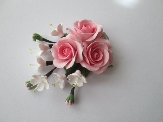 Полимерная глина идеально подходит для новичков. Хотя «классический» материал требует обжига, сейчас это название используют для обозначения группы самозатвердевающих составов. Из полимерной глины изготавливают только небольшие по размерам изделия. С помощью ножниц, пинцета и иголок можно создать аккуратные головки клевера, бутоны нежной орхидеи или лилии, миниатюрные розочки. Для оформления бутылки обычно используют два-три вида полимерных цветов, чтобы декор не смотрелся бедненько и скучно. Хотя фантазию мастера никто не ограничивает: если хватает усидчивости, можно собрать полноценный букет полевого разнотравья.