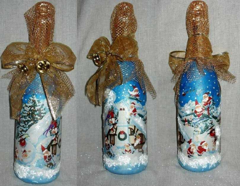 Наиболее подходящим праздником для шампанского, конечно же, является Новый год. Потрясающие возможности и идеи для декорирования бутылки в технике декупаж:
