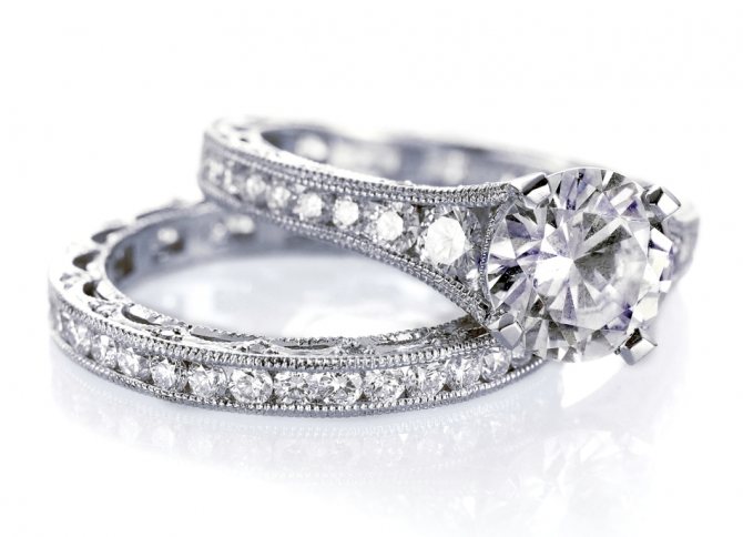 В магазинах можно встретить украшения с уже имеющейся гравировкой, но обычно она представляет собой общие фразы о вечной любви и верности. Сделать индивидуальную надпись поможет ювелир, причем эта услуга недорогая. Дорогие парные обручальные кольца из белого золота с бриллиантами. Фото
