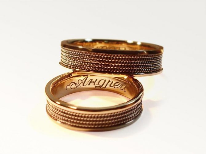 Чаще всего надписи делают на внутренней стороне кольца и смысл фразы предназначается только для того человека, который его носит. Последней новинкой стала гравировка в виде отпечатка пальца. А нанесение даты свадьбы или первого свидания намного упростит участь супруга и поможет вовремя вспомнить о годовщине и запастись подарком.