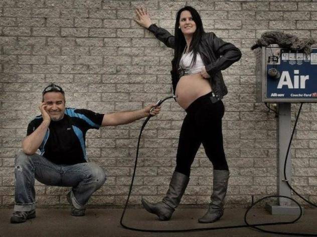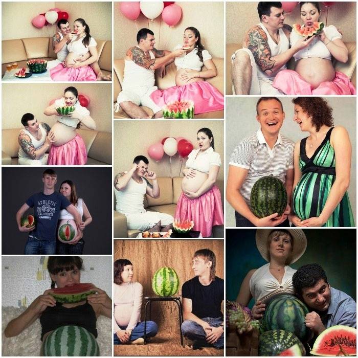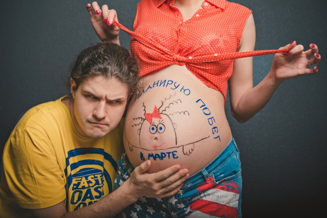 Веселые родители не откажутся от смешного фотосета с животиком. Самый популярный вариант – обыграть на фото пол ребенка.