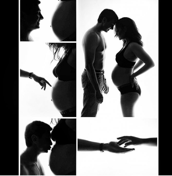 Все внимание сконцентрировано на животе беременной: руки на животе, под животом, и на всех фото живот обязательно должен присутствовать