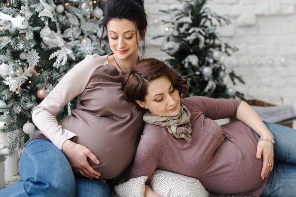 Такие фото выглядят очень красиво, но на них легко ошибиться при позировании, поэтому будущей маме не стоит прижимать подбородок к плечу или сильно задирать его кверху. Животик должен выглядывать только чуть-чуть.