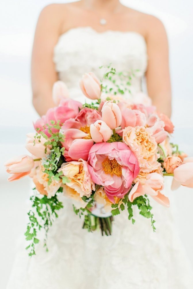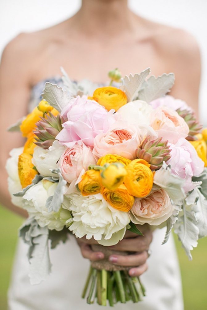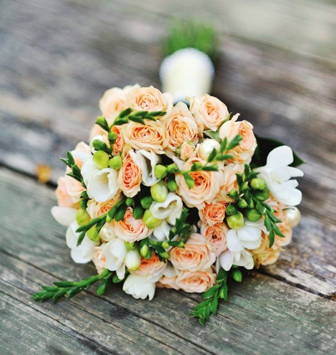 Фрезии помогут создать воздушный и нежный букет. Цветовая палитра может быть белой, кремовой, сиреневой или оранжевой Пионы символизируют долгую и счастливую семейную жизнь. Они замечательно вписываются в свадебный образ невесты