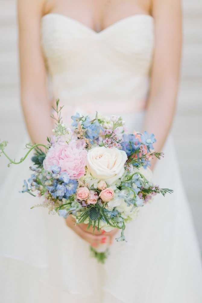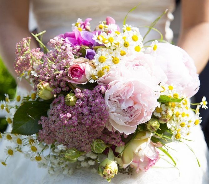 Из полевых цветов получаются замечательные весенние свадебные букеты для невесты