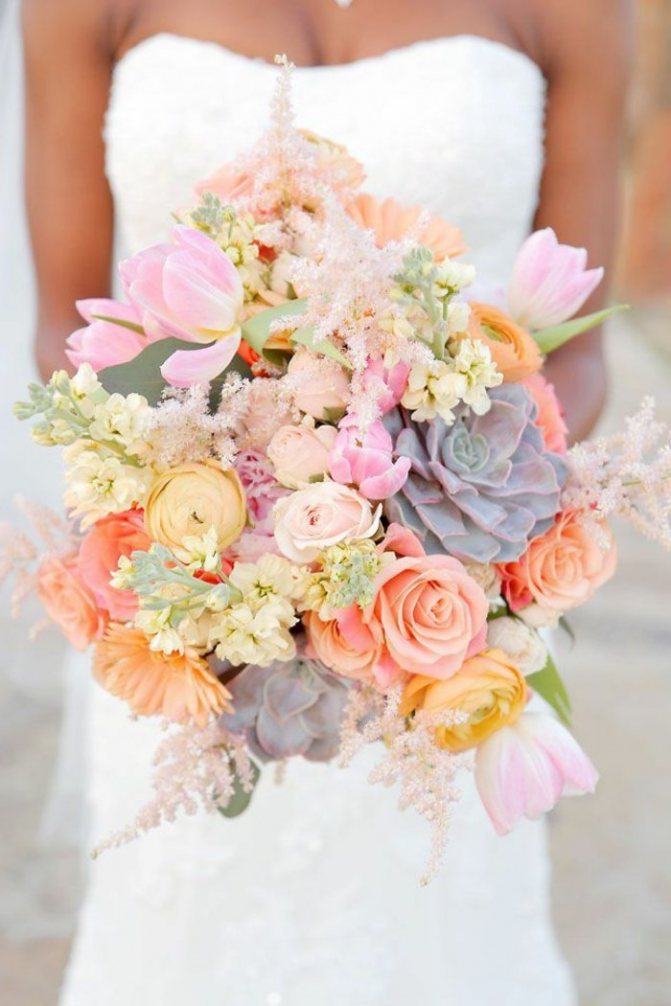 Свадебные букеты для невесты должны гармонировать со стилистикой праздника и учитывать время года Символом любого праздника являются цветы. Особенно такого, торжественного события, как свадьба, лучшим украшением считаются свадебные букеты для невесты. Фото стильных композиций можно увидеть и у нас. Такие букеты должны гармонировать со стилистикой праздника и учитывать время года. При желании красивую цветочную композицию можно соорудить самостоятельно. Необычный букет невесты призван создать настроение и подчеркнуть стиль праздника.