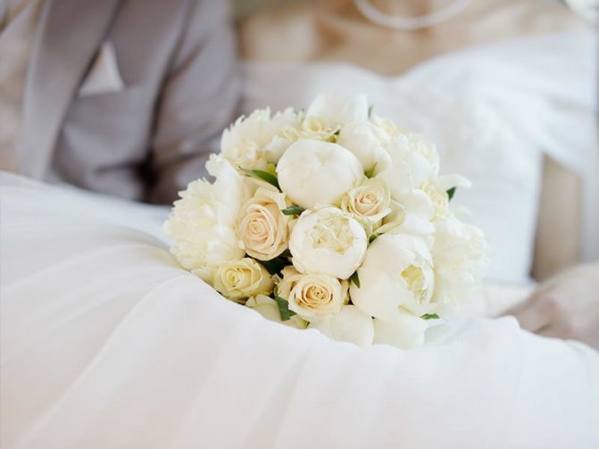 Букет для свадьбы можно сделать из ландышей, калл, пионов, орхидей. Великолепно смотрятся свадебные букеты для невесты из роз.