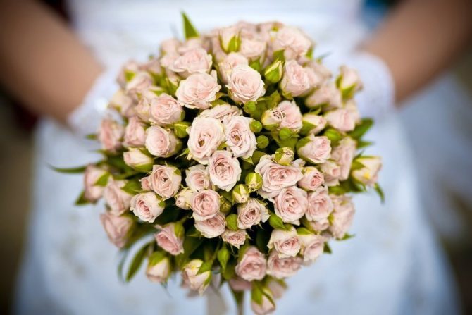 Совет! Если платье цвета шампань или молочное, то стоит выбирать растения розовых или кремовых оттенков. В этом случае не подойдут белоснежные бутоны.