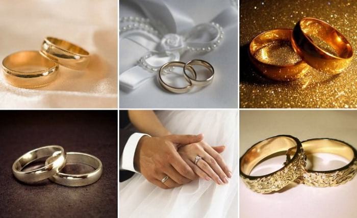 По старинным поверьям, супружеские украшения должны быть простой формы с гладкой поверхностью. Тогда жизнь молодой семьи потечёт ровно, супруги не поссорятся. Важно, чтобы украшения были сделаны из одного драгоценного металла: золота или платины. Реже молодожёны останавливаются на серебряных кольцах.