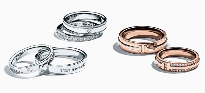 Неизвестно, является ли это ноу-хау бренда, но именно мастера Tiffany одни из первых предложили парные кольца, где женское отличается изысканным декором, а мужское, наоборот, более простое и не так притягивает взгляды.