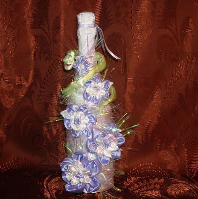 Свадебные бутылки из атласных лент своими руками: мастер-класс