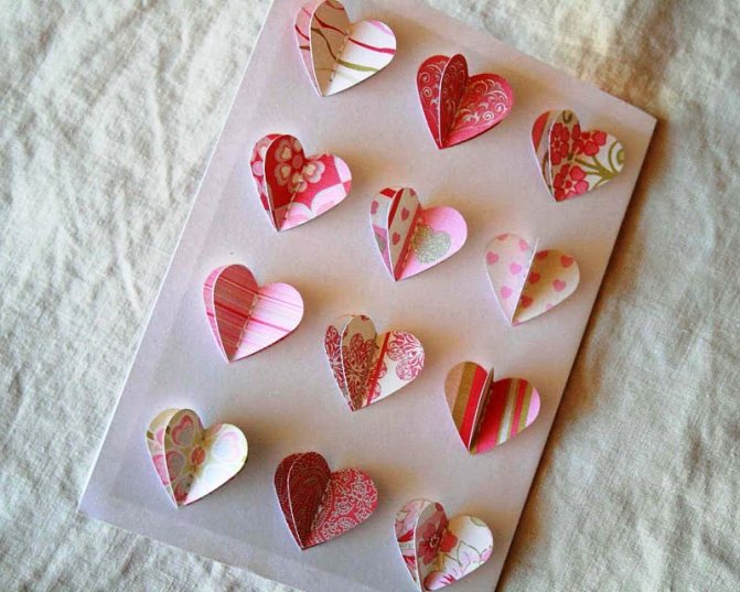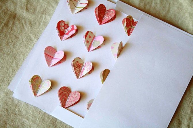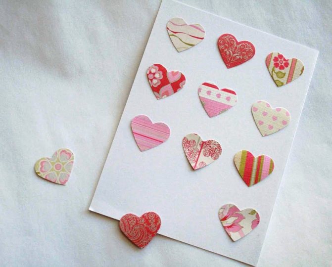 Для начала подготовьте сердечки для украшения лицевой стороны открытки.