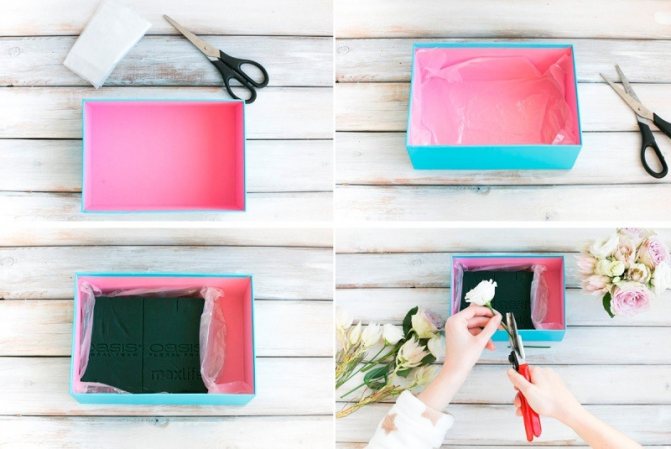 Оформление не займет много времени: на дно ящики устелите наполнитель и аккуратно расставьте съестные продукты.