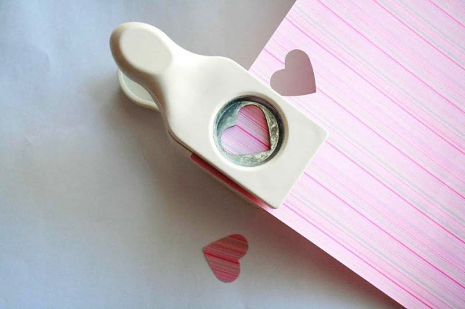 Дыроколом вырубите необходимое количество, из расчета, что каждого цвета потребуется по два сердечка.