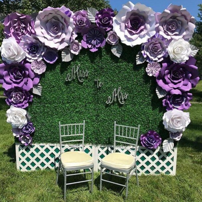 Под таким декором мы имеем в виду различные вертушки, веера, большие цветы из бумаги.