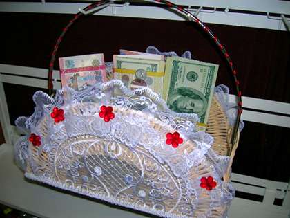 Интересно, что на западе деньги дарить как раз не принято. Молодожены поступают по другому: они идут в крупный магазин со множеством отделов и составляют список товаров, которые им бы хотелось иметь. При этом цена может быть совершенно разной. Этот список хранится в магазине (крупные универмаги предоставляют такую услугу) и каждый гость получает возможность прийти, назвать фамилию молодоженов и посмотреть, что из подарков не занято. Сотрудники обновляют список при каждой покупке. Очень удобная и простая система, жаль, что в России до сих пор не организовано ничего подобного.