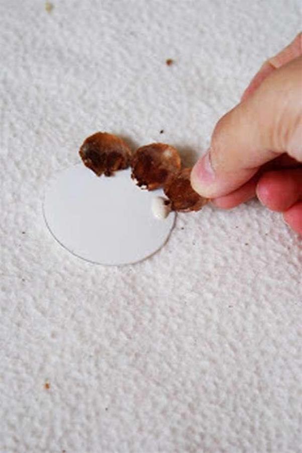 Наносим немного клея на края нашего картонного круга и прикрепляем к нему чешуйки внутренней стороной вверх.