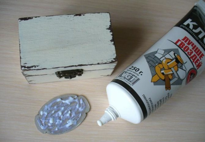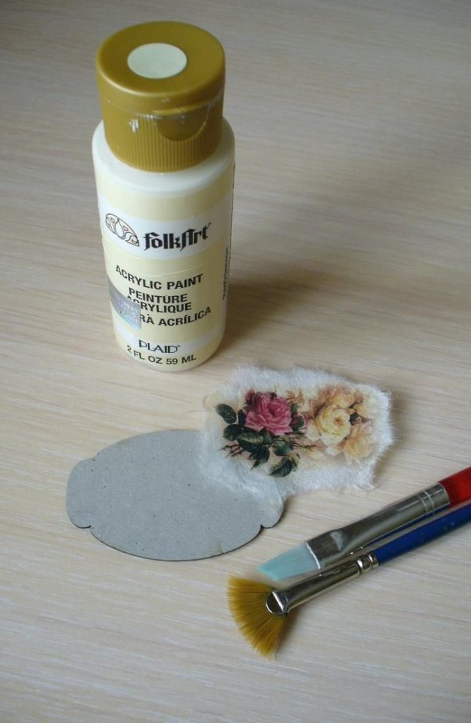 - Методом прямого декупажа переносят картинку на крышку, промазывают клеем. Когда изделие просохнет, наносят лак.