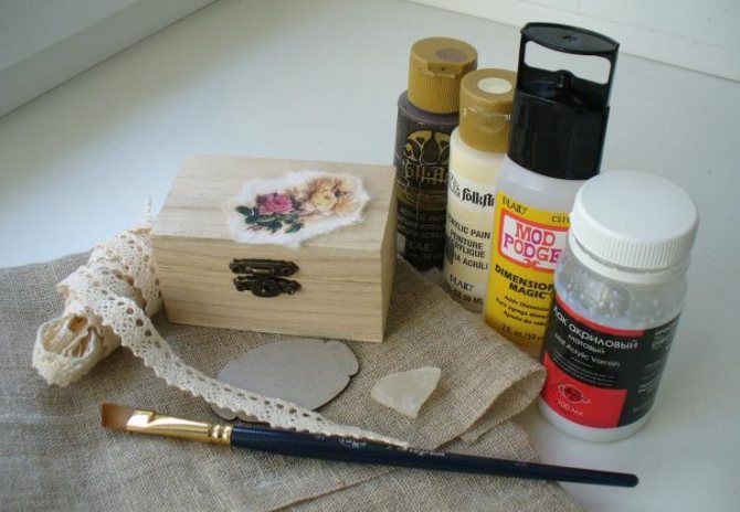 Деревянная поверхность преобразится после окрашивания или нанесения рисунка. При отсутствии художественных навыков, поможет декупаж. Останется только выбрать салфетку с красивым узором, чтобы перенести на крышку шкатулки.