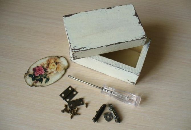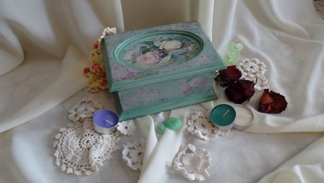 - Модное торжество в стиле шебби-шик украсит состаренная шкатулка с нарисованными на крышке чайными розами.