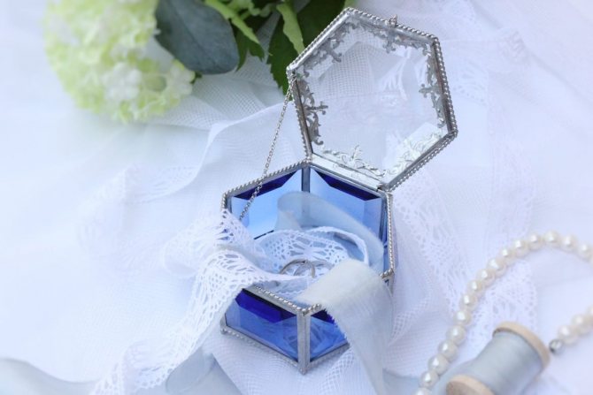 Именно среди дворянства зародился обычай использовать шкатулки с подушечками для обручальных колец. Часто их декорировали кружевом, бархатом или атласом.