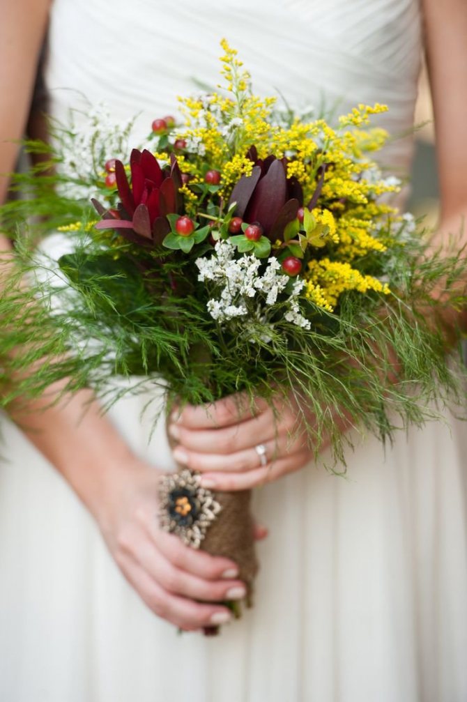 - В начале осени замечательно выглядят букеты, в основе которых преобладает желтый. В середине и конце сезона цвета могут стать более яркими – оранжевыми, бордовыми, красными, фиолетовыми, пурпурными.