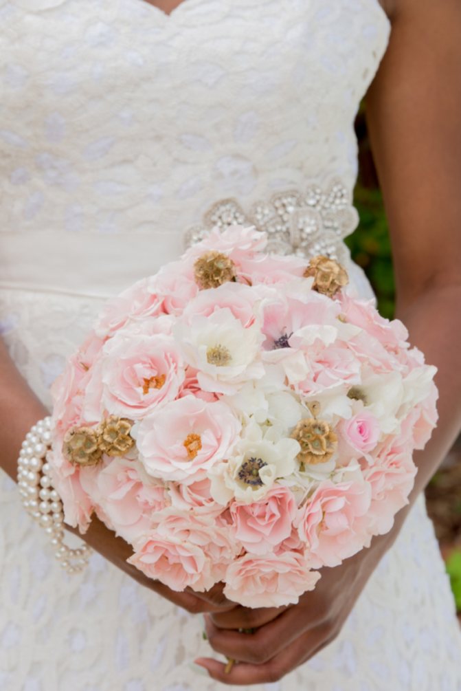 - Зефирные цветочки пудрового оттенка. В качестве таких элементов могут служить пионовидные розы, гардении и ранункулюсы.