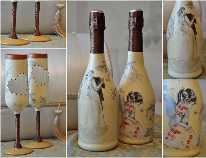 Бутылки шампанского на свадьбу своими руками в технике декупаж: инструкция с фото