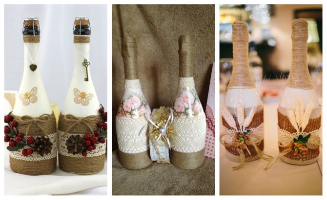 Оформление и декорирование бутылок шампанского на свадьбу можно осуществить при использовании нескольких методов.