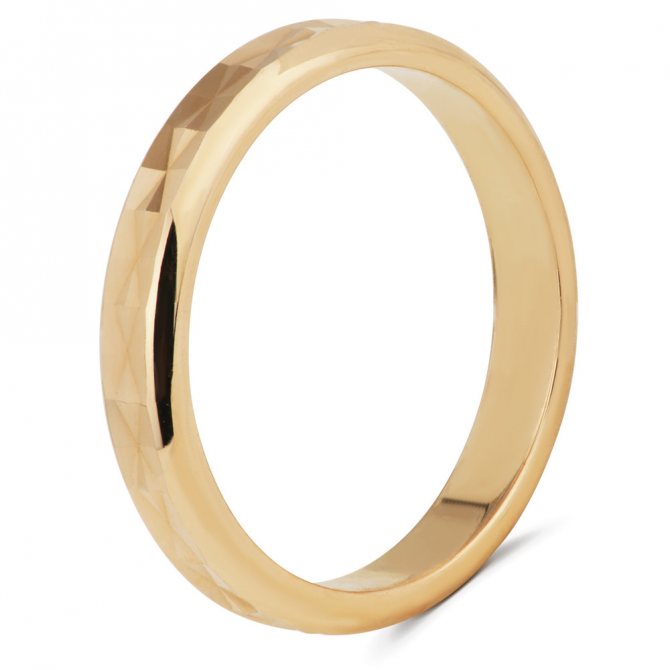 - У мужа кольцо глянцевое, а у жены в этом же металле, но с матовым покрытием или серпантином;