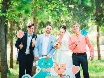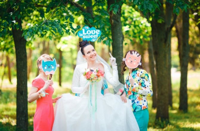 Если жених и невеста в большинстве случаев держат в руках таблички с указанием своих имен, то гостям достаются надписи шутливые, способные поднять настроение даже тем, кто, спустя долгое время, будет рассматривать снимки. Слова, написанные на табличках, наверняка заставят улыбнуться тех, кто решить заглянуть в фотоальбом.