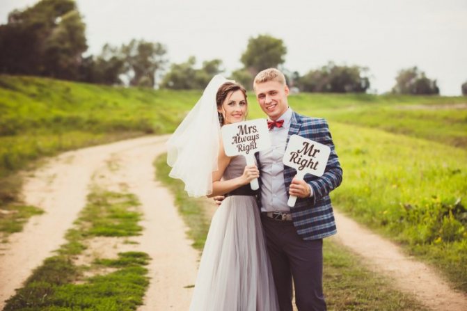 Таблички для свадебной фотосессии: идеи и вариации