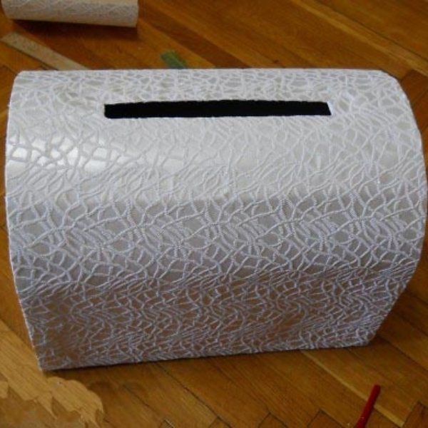В крышке делается прорезь, а после все обклеивается бумагой или тканью и декорируется. Прорези для конвертов лучше всего декорировать тесьмой – она очень красива, и прорезь будет выглядеть аккуратно и опрятно.